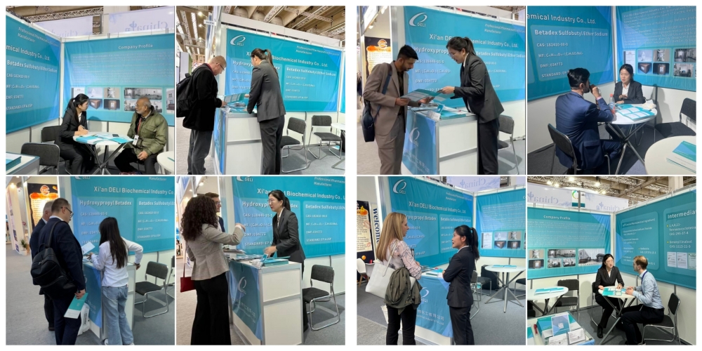 Η Xi'an Deli Biochemical Industry Co., Ltd. παρουσίασε με περηφάνια τις τελευταίες της καινοτομίες στο Booth 8.0P30, παρουσιάζοντας μια ολοκληρωμένη γκάμα προϊόντων, όπως Hydroxypropyl Betadex (HPBCD), Betadex Sulfobutyl Ether Sodium (SBECD), Sulfate Glucosamine NatricoChloretrinextide και Mediconatrinextide.