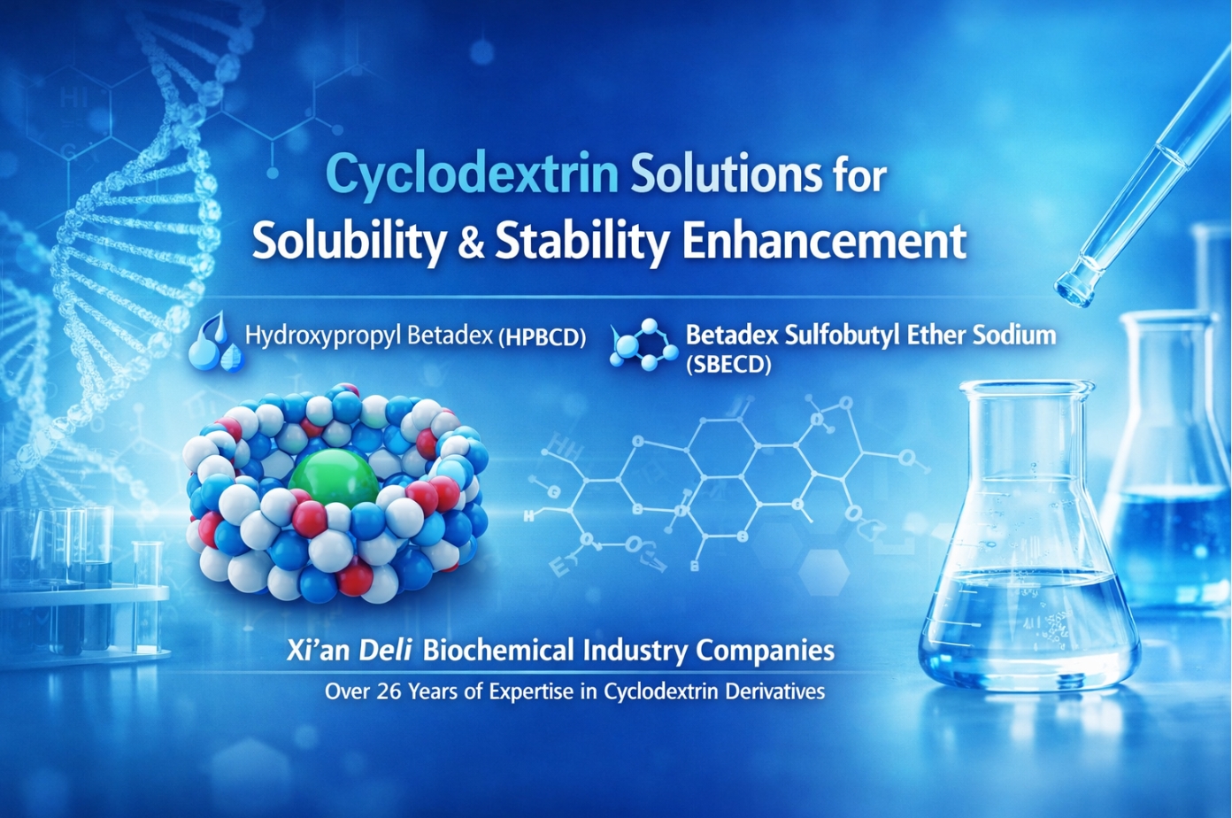 Οι κυκλοδεξτρίνες αναγνωρίζονται ευρέως για την ικανότητά τους να βελτιώνουν τη διαλυτότητα και τη σταθερότητα των ελάχιστα διαλυτών ή χημικά ευαίσθητων ενώσεων. Λόγω της μοναδικής κυκλικής μοριακής τους δομής, οι κυκλοδεξτρίνες και τα παράγωγά τους έχουν γίνει σημαντικά λειτουργικά έκδοχα σε φαρμακευτικά, χημικά και συναφή πεδία σκευασμάτων. Ως απάντηση στις αυξανόμενες τεχνικές και κανονιστικές απαιτήσεις, η Xi'an Deli Biochemical έχει βελτιώσει περαιτέρω την τεχνική τεκμηρίωση και την υποστήριξη προϊόντων για τα βασικά της παράγωγα κυκλοδεξτρίνης:υδροξυπροπυλο betadex (HPBCD) και betadex σουλφοβουτυλαιθέρα νατρίου (SBECD).